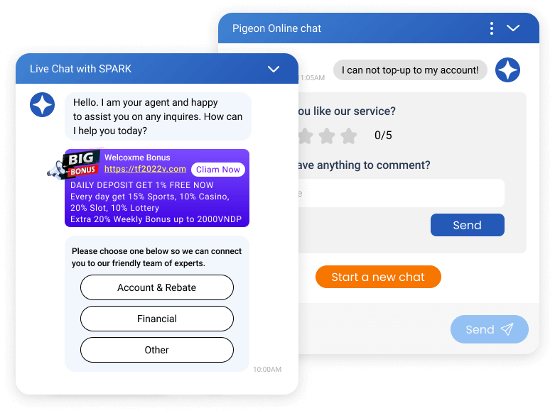 - Transfer chats to agents